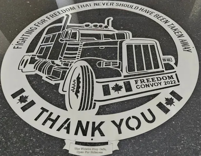 The second day of our trip to Ottawa I got a picture of one of these hanging on our wall in the Whistle Stop Cafe in Mirror, Alberta.  It’s never left the wall since.  The one in our cafe was a gift from someone who supports freedom, and was appreciative that someone was doing SOMETHING!  Everyone can do their part.  Over the last couple years we have had DOZENS of people ask where they can get these so they can either gift it to someone or hang it on their own wall as a reminder of the greatest thing to happen to Canada since Trudeau resigned in Nineteen Eighty-Four.  The year is not a coincidence.